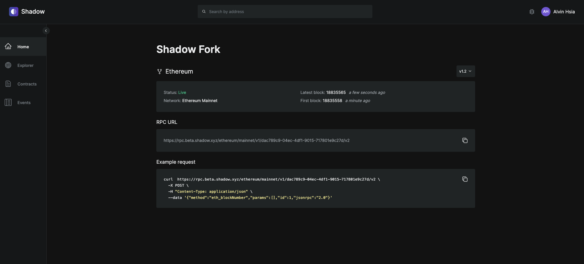 eth_getLogsandeth_call. - Simply swap your mainnet RPC URL with your Shadow RPC URL.